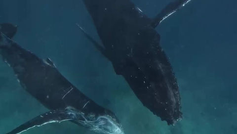 Humpback whales migrate from the cold Antarctic waters to the warmer Indian Ocean waters surrounding Mauritius for breeding and calving